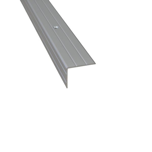 Hopeanvärinen askelkulmalista suojaa porrasreunoja kulumiselta, estää liukastumista ja lisää askelmien näkyvyyttä. Sopii erinomaisesti käytettäväksi sekä kotitalouksissa että julkisissa tiloissa. Listassa on valmiit ruuvinreiät ja uritettu pinta, mikä helpottaa asennusta ja parantaa pitoa.