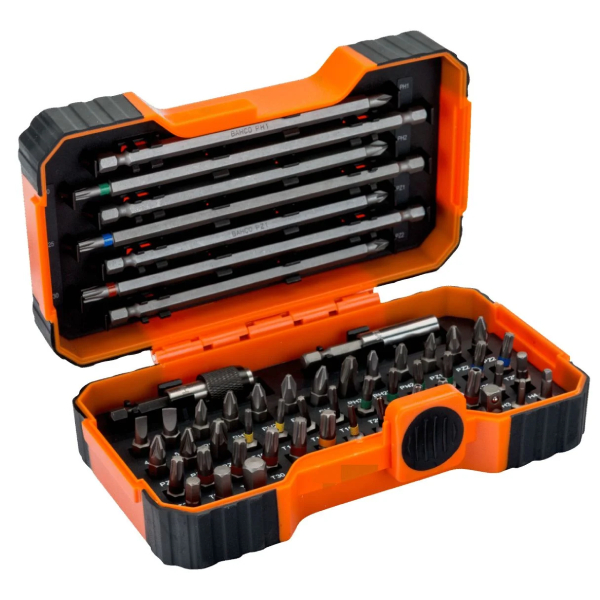 Bahco 54-osainen ruuvikärkisarja tarjoaa kattavan valikoiman kestäviä ja laadukkaita ruuvikärkiä monipuoliseen käyttöön. Sarja sisältää kaksi erilaista magneettista kärkipidikettä, hylsysovittimen sekä laajan valikoiman eri pituisia ja mallisia ruuvauskärkiä. Ruuvikärjet soveltuvat sekä ammattikäyttöön että vaativaan kotikäyttöön.