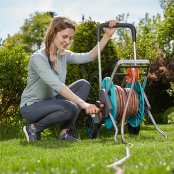 Gardena CleverRoll M Easy -letkuvaunu tekee kastelusta mukavaa ja vaivatonta. Sen tukevan rakenteen ansiosta letkua voidaan kelata pehmeästi ja hallitusti ergonomisella kampikahvalla ja integroidulla metallisella letkunohjaimella.