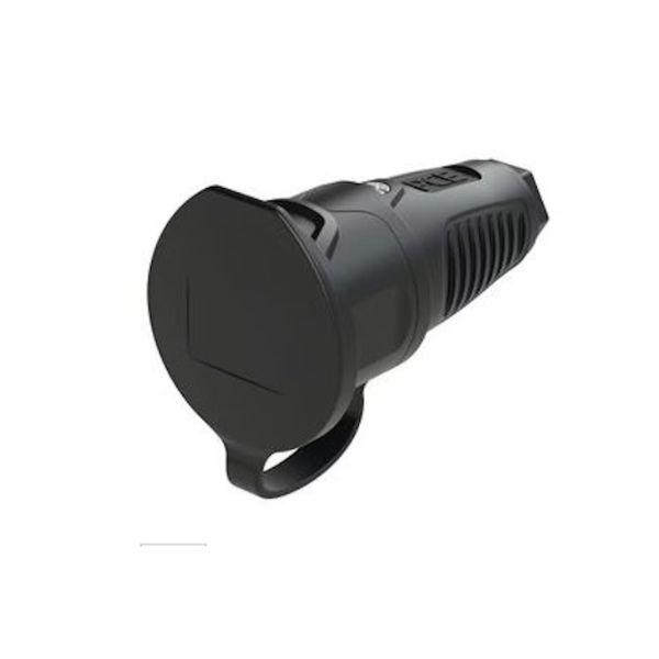 Tämä 1-osainen jatkopistorasia on valmistettu kestävästä kumista ja soveltuu vaativiin olosuhteisiin. Pistorasia on väriltään musta ja sen kotelointiluokka on IP54, joka suojaa pölyltä ja roiskevedeltä.