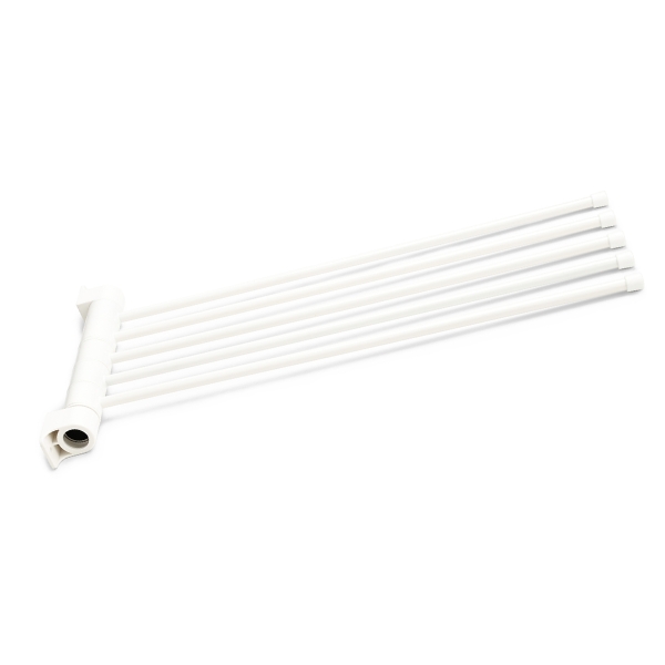 Valkoiseksi maalatusta teräksestä valmistettu 5-vartinen kuivausoksa. Kääntyvät varret helpottavat pyykkien ja tekstiilien ripustamista. Kiinnikkeessä käytetty kovamuovi varmistaa kevyen ja kestävän rakenteen.