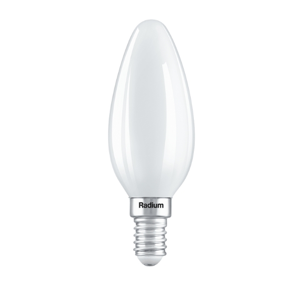 Radiumin LED‑lamppu E14 kynttilämallissa on energiatehokas ja laadukas valonlähde pienempiin valaisimiin, kuten kattokruunuihin, seinävalaisimiin ja pöytävalaisimiin. Lamppu tuottaa lämpimän valkoista valoa (2700 K / 827) ja vastaa valoteholtaan perinteistä 40 W hehkulamppua.