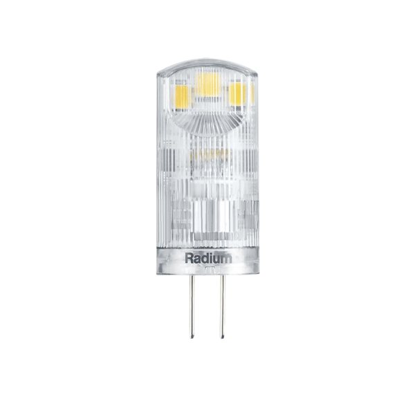Radium RL-PIN20 on pienikokoinen ja energiatehokas G4-kantainen LED-lamppu, joka on suunniteltu korvaamaan perinteiset 28 W halogeenilamput. Lamppu toimii 12 V jännitteellä ja tuottaa lämpimän valkoista valoa (2700 K), mikä tekee siitä erinomaisen valinnan esimerkiksi kalustevalaisimiin, liesituulettimiin ja muihin pienikokoisiin valaisimiin.