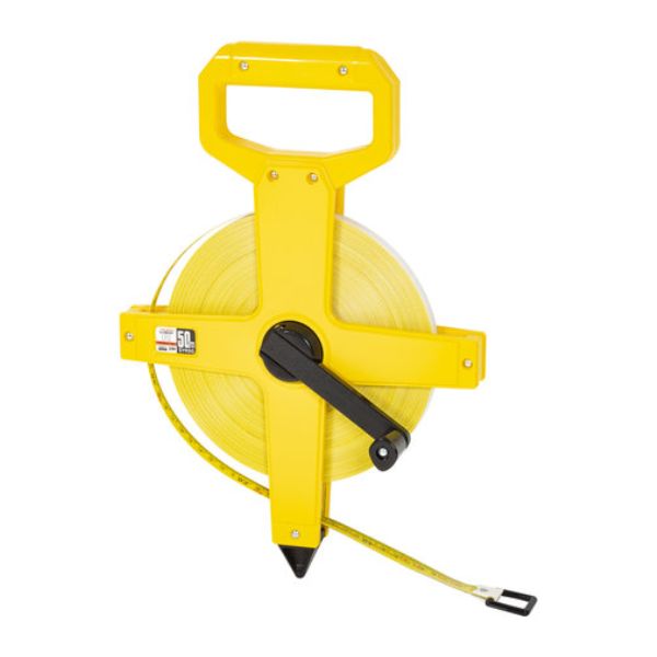 Tajima SYMRON-R on pidempien etäisyyksien mittaamiseen soveltuva rullamitta, jonka pituus on 50 metriä. Mittanauhan runko on valmistettu kestävästä muovista, ja nauha on lasikuituvahvistettu sekä PVC-pinnoitettu, mikä takaa pitkäikäisyyden ja kestävyyden.