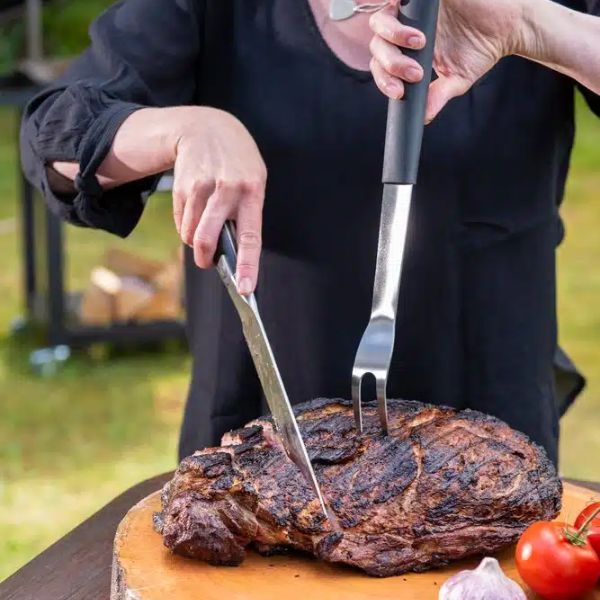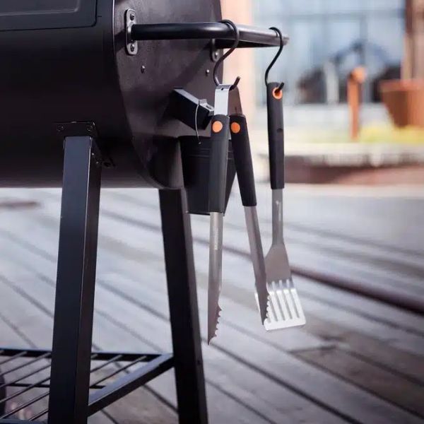 Mustang Grillausvälinesarja Basic on käytännöllinen perussetti grillaajalle. Sarja sisältää grillipihdit (40 cm), lastan (42 cm) ja haarukan (40 cm), kaikki ruostumattomasta teräksestä. Pitkät varret pitävät kädet sopivalla etäisyydellä kuumuudesta, ja välineet sopivat niin hiili‑, kaasu‑ kuin sähkögrilleillekin.