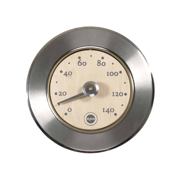 Opa LUMO Teräs saunamittari yhdistää tyylikkyyden ja käytännöllisyyden. Mittarin kehys on harjattua ruostumatonta terästä ja mittariosa puuta, mikä tuo saunaan hienostuneen ja luonnonläheisen ilmeen. Pieni ja huomaamaton mittari on elegantti yksityiskohta, joka helpottaa saunan lämpötilan seuraamista ja löylyn hallintaa.