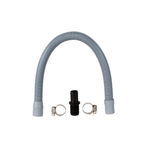 PK-poistoletkun jatkosarja 500 mm, harmaa, on suunniteltu pidentämään pesukoneen poistoletkua silloin, kun viemäri- tai seinäpoisto sijaitsee kauempana koneesta. Jatkoletkun molemmissa päissä on suorat kumipäät, koot 19 ja 22 mm, joten se sopii useimpiin pesu- ja astianpesukoneiden poistoletkuihin.