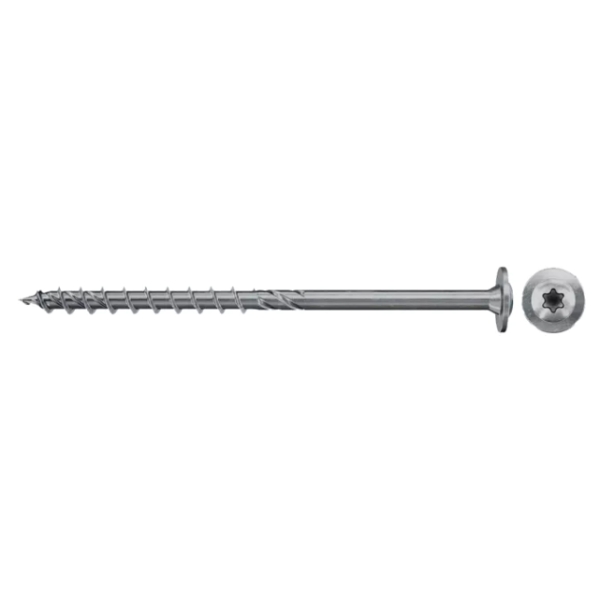 Laippakannan ansiosta vetolujuus on selvästi suurempi kuin tavallisissa uppokantaruuveissa, ja TX30-kanta varmistaa tehokkaan väännön ilman lipsumista. Osakierre pitää elementit tiiviisti yhdessä ja soveltuu kaikkeen puutöihin, kuten runko-, kattoristikko- ja terassirakenteisiin.