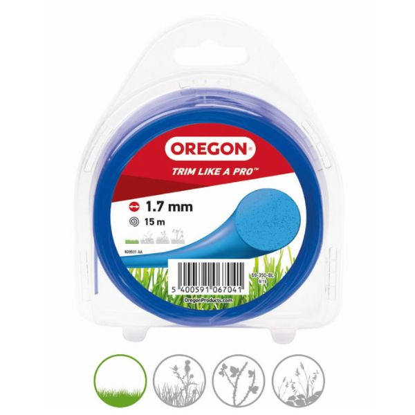 Oregon®-perussiima on luotettava valinta nurmikon reunojen ja kevyen kasvillisuuden tarkkaan siistimiseen. Ohut 1,7 mm halkaisija tekee tästä siimasta erinomaisen valinnan erityisesti pienemmille sähkö- ja akkukäyttöisille trimmereille, joissa tarvitaan kevyesti leikkaavaa ja tarkkaa siimaa.