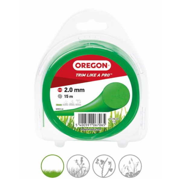 Oregon®-perussiima on luotettava valinta ruohon ja muun kevyen kasvillisuuden siistimiseen pihan ja puutarhan alueilla. 2,0 mm paksu siima soveltuu erityisesti kevyempään ja tarkempaan trimmaustyöhön esimerkiksi nurmikon reunoilla, istutusalueiden ympärillä ja ahtaissa kohdissa.