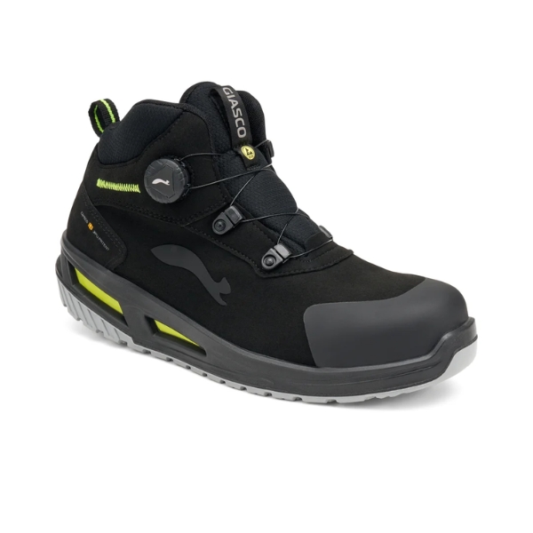 Giasco Wolverine on korkeavartinen ja kestävä S3-turvajalkine, joka on suunniteltu vaativiin työolosuhteisiin. MICRO-tech -teknisestä materiaalista (1,8–2,0 mm) valmistettu päällinen tarjoaa erinomaisen kulutuskestävyyden ja rakenteellisen tuen. TPU-vahvistettu varvassuoja lisää kengän käyttöikää kovassa kulutuksessa.