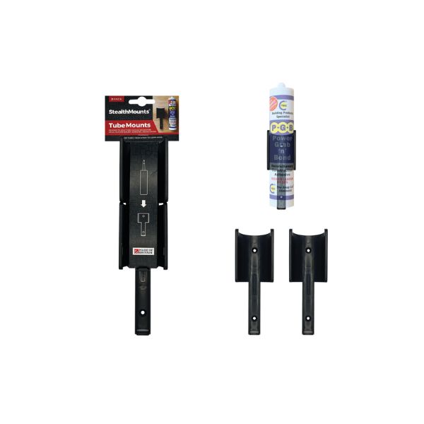 StealthMounts-tuubinpidike mahdollistaa silikonien, liimojen ym. säilytyksen siististi ja kätevästi työpajassa, autossa tai varastossa. Kestävä ABS-muovi ja ruuvikiinnitys takaavat tukevan asennuksen mihin tahansa pintaan. Pidikkeet voi asentaa vierekkäin tai erilleen, myös ahtaisiin tiloihin. Valmistettu Iso-Britanniassa.