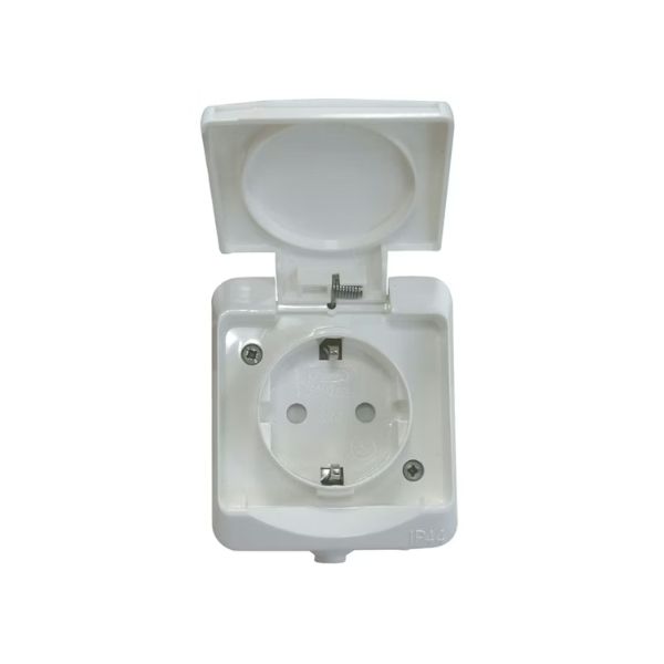 Tämä 1-osainen maadoitettu pinta-asenteinen OPAL PRO -ulkopistorasia on suunniteltu kestämään ulkokäyttöä ja kosteita tiloja. Pistorasiassa on täydellinen kotelo ja IP44-kotelointiluokka, joka suojaa roiskevedeltä ja pölyltä.